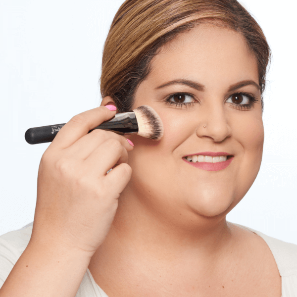 Apply under your cheekbones and speak to how the density of the brush gives a perfectly blended application.