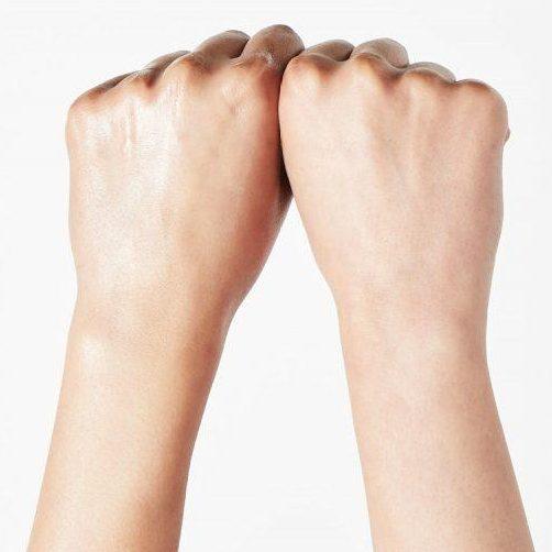 Compare hands and speak to the benefits of our skin loving ingredients 2% Salicylic Acid, 3% Lactic Acid which exfoliate and target breakouts! Postbiotic ferment to calm and sooth! Niacinamide to fade post acne marks