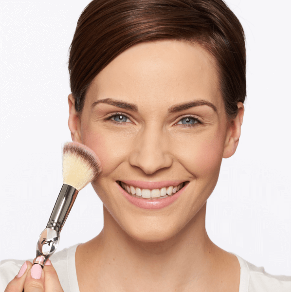 Use your Heavenly Luxe French Boutique Blush Brush #4 to airbrush blush onto cheeks.