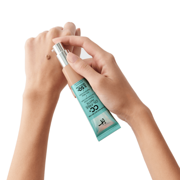 To help control oil even more, apply Bye Bye Pores Primer prior to CC+ Cream Oil-Free Matte with SPF 40.