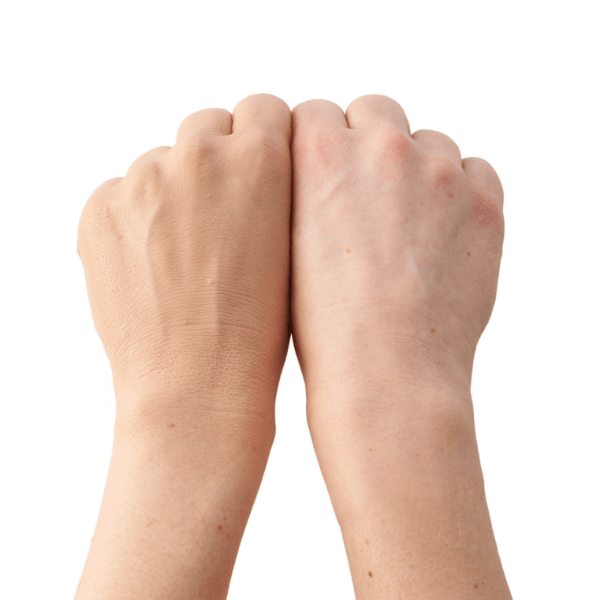 Compare two hands to show how CC+ Cream Oil-Free Matte with SPF 40 delivers full coverage and a natural-looking matte finish!