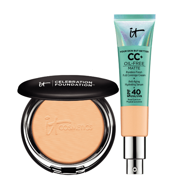 For added coverage and an extra matte finish, set with Celebration Foundation.