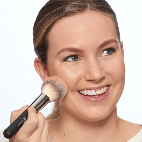 For lighter, sheerer coverage, use a large loosely-packed brush to buff CC+ Cream with SPF 50 onto your skin.