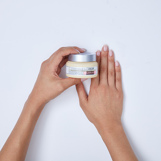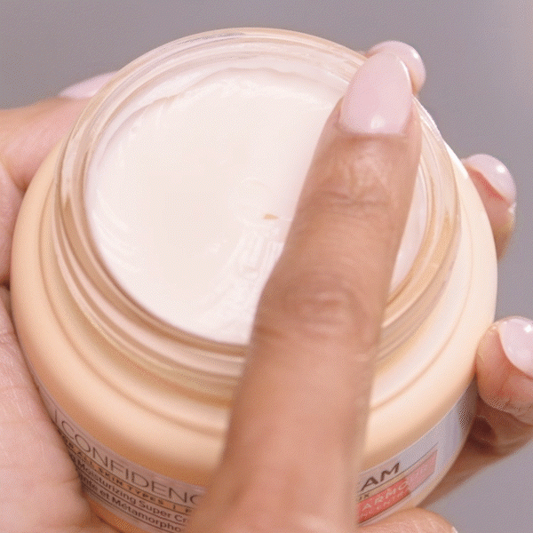Confidence in a Cream also reinforces the skin barrier with Ceramides and Squalane which replenish and lock in moisture for healthier looking skin! Our formula is also paraben free, mineral oil free, vegan, and clean at Sephora and Ulta. Perfect for all skin types, even the most sensitive!