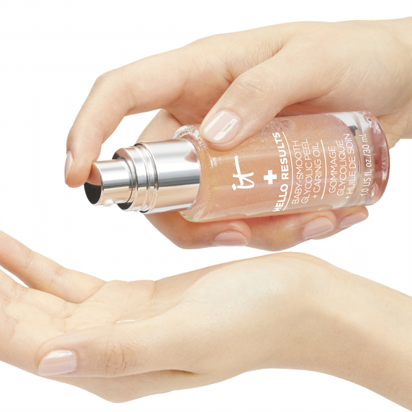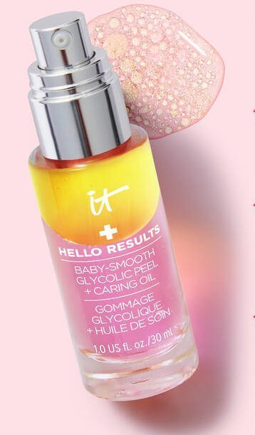 Hello Results Baby Smooth Peel is your 1 step nightly glycolic peel for Baby Smooth skin! Inspired by in office peel procedures, our night time solution delivers a smoother more refined texture for even the most sensitive skin. Hello Results Baby Smooth Peel has been carefully crafted with our IT Cosmetics both efficacy and care! Infused with glycolic acid for accelerating skin cell turnover and Argan & Meadow Seed Oil to nourish and hydrate the skin. Clinically tested and proven to smooth skin texture while minimizing the appearance of fine lines and pores. Skin looks baby smooth in just 4 weeks!