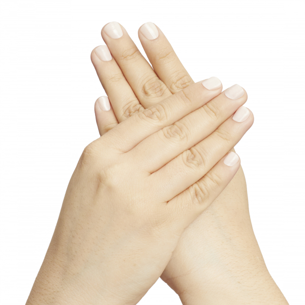 After cleansing your hands, shake bottle and dispense 1-2 pumps of HR Peel onto the fingertips of your customer’s hand.