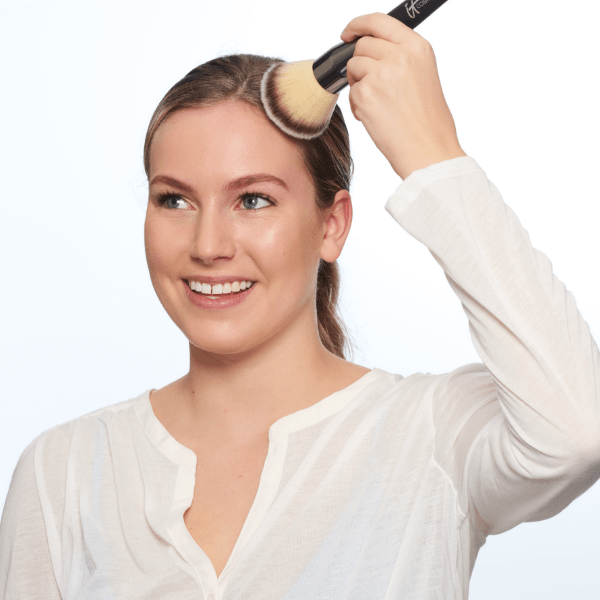 Hand brush to the client and have them feel the brush for themselves. Speak to the custom-cut brush head and how it helps deliver flawless-looking application.