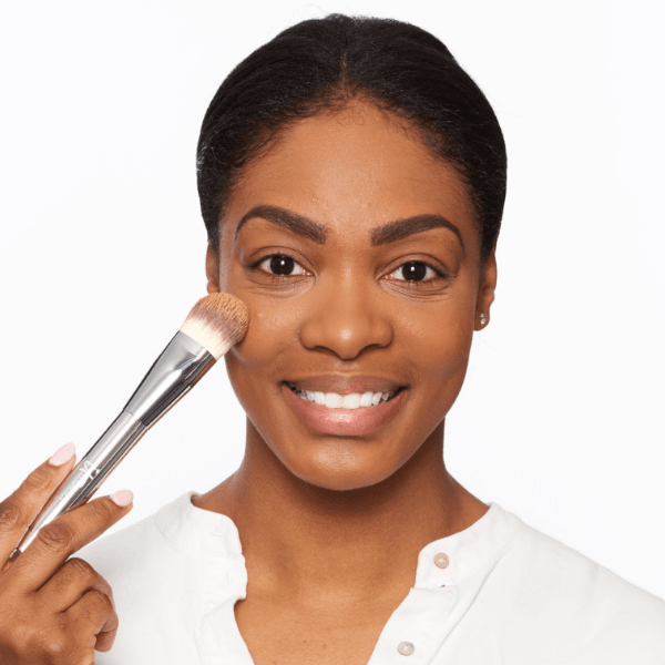 Custom-cut, brush head hugs your features for flawless, streak-free coverage!
