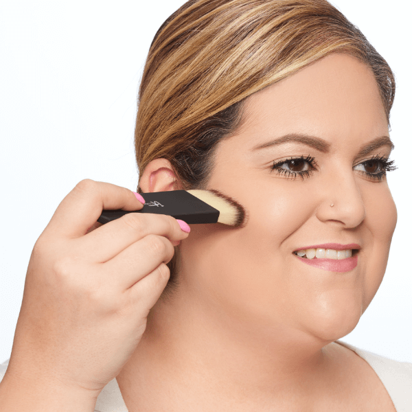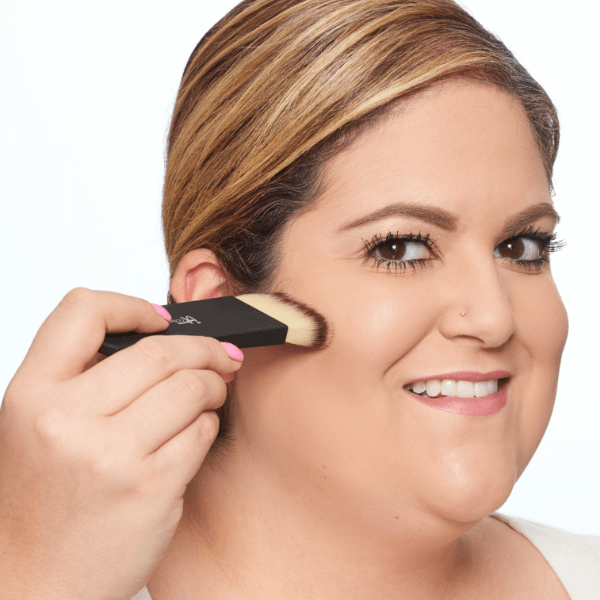 Apply under the cheekbones and speak to how the density of the brush gives a perfectly blended application.